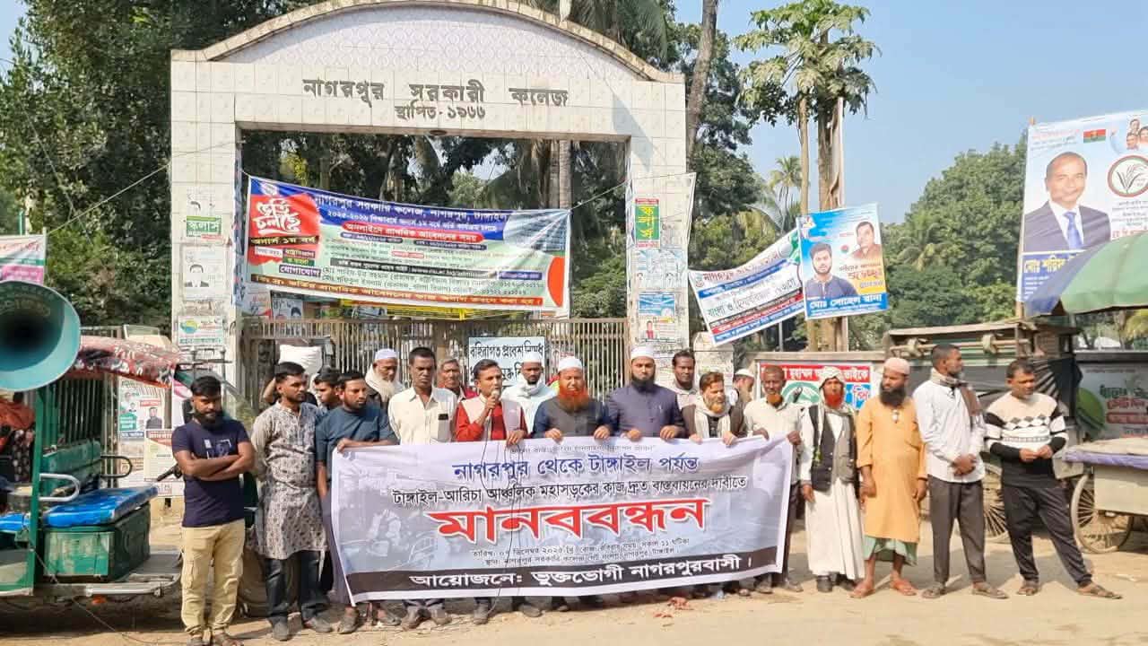 টাঙ্গাইল-আরিচা আঞ্চলিক সড়কের কাজ দ্রুত বাস্তবায়নের দাবিতে মানববন্ধন