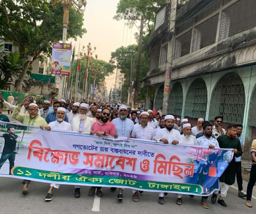 গণভোটের রায় বাস্তবায়নের দাবিতে টাঙ্গাইলে ১১ দলীয় জোটের বিক্ষোভ মিছিল ও সমাবেশ অনুষ্ঠিত হয়েছে।