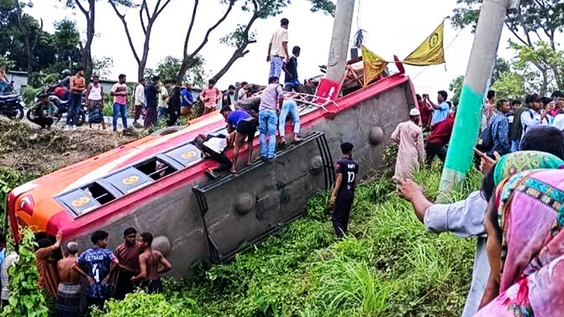 ফরিদপুরে বাস নিয়ন্ত্রণ হারিয়ে খাদে পড়ে বাবা-ছেলেসহ সাতজন নিহত হয়েছেন। আহত হয়েছেন ৩২ জন।মঙ্গলবার (৮ এপ্রিল) বেলা ১১টার দিকে ফরিদপুর সদরের গেরদা ইউনিয়নের জোবায়দা করিম জুট মিলের কাছে ঢাকা-বরিশাল মহাসড়কে এ ঘটনা ঘটে।