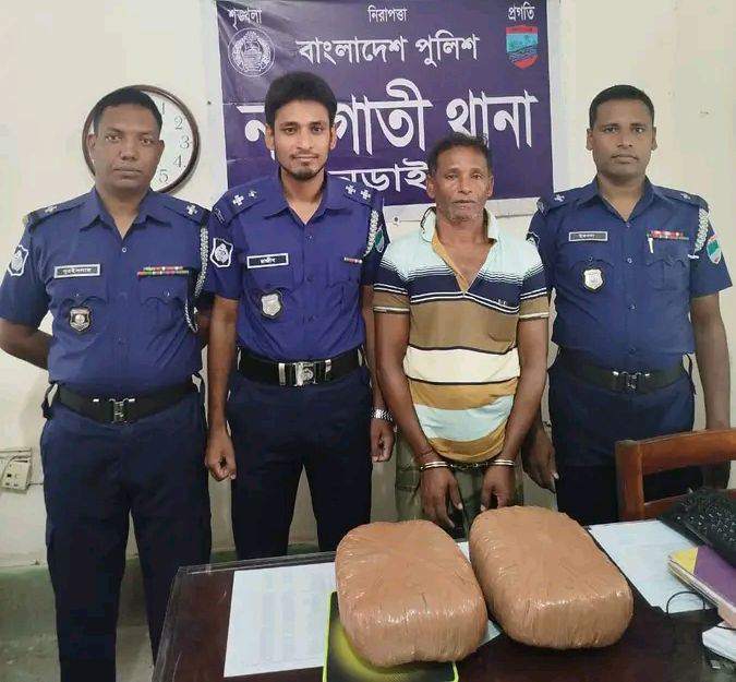 অদ্য ২৩ মে’২৫ ভোর ০৫ঃ৪০ ঘটিকার সময় নড়াগাতী থানাধীন পহরডাঙ্গা ইউনিয়নের পাখিমারা গ্রামস্হ পাখিমারা মাদ্রাসার মোড় (তেমাথা) জনৈক কামাল সরদারের চায়ের দোকানের সামনে পাঁকা রাস্তা উপর হতে তাকে আটক করা হয়। গোপন সংবাদের ভিত্তিতে নড়াইল নড়াগাতী থানার অফিসার ইনচার্জ মোঃ আশিকুর রহমানের তত্ত্বাবধানে এসআই(নিঃ) রাজীব পাল রাজু, এএসআই(নঃ) মোঃ ইকবাল হোসেন ও এএসআই (নিঃ) মোঃ নূর ইসলাম সঙ্গীয় ফোর্সসহ অভিযান চালিয়ে মোঃ জিল্লাল মোল্যা(৫০) কে গ্রেফতার করে। এ সময় ধৃত আসামির নিকট থেকে অবৈধ মাদকদ্রব্য ০৪(চার) কেজি গাঁজা জব্দ করা হয়।