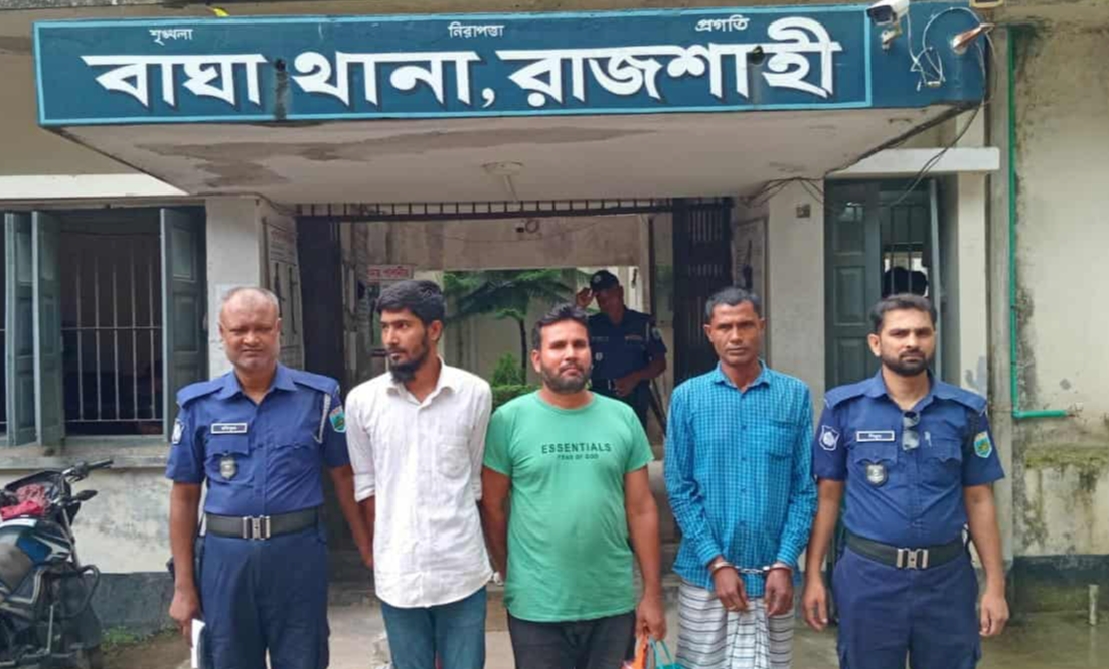 বাঘা থানা পুলিশের বিশেষ অভিযানে নিয়মিত চুরি মামলার আসামি এবং ওয়ারেন্টভুক্ত তিন পলাতক আসামিকে গ্রেফতার করা হয়েছে।