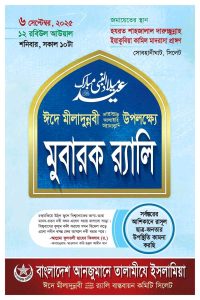 উপমহাদেশের প্রখ্যাত বুযুর্গ, শামসুল উলামা হযরত আল্লামা ফুলতলী ছাহেব কিবলাহ রহ. এর হাতে গড়া বাংলাদেশ আনজুমানে তালামীযে ইসলামিয়ার উদ্যোগে প্রতি বছরের ন্যায় আগামী ১২ রবিউল আউয়াল (০৬ সেপ্টেম্বর, শনিবার) সিলেট নগরীতে ঈদে মীলাদুন্নবী সা. উপলক্ষ্যে ‘মুবারক র‌্যালি’ অনুষ্ঠিত হবে। এ উপলক্ষ্যে মীলাদুন্নবী সা. র‌্যালি বাস্তবায়ন কমিটি সিলেট এর হযরত আল্লামা ফুলতলী ছাহেব কিবলাহ রহ.-এর মাযার যিয়ারত সম্পন্ন হয়েছে।