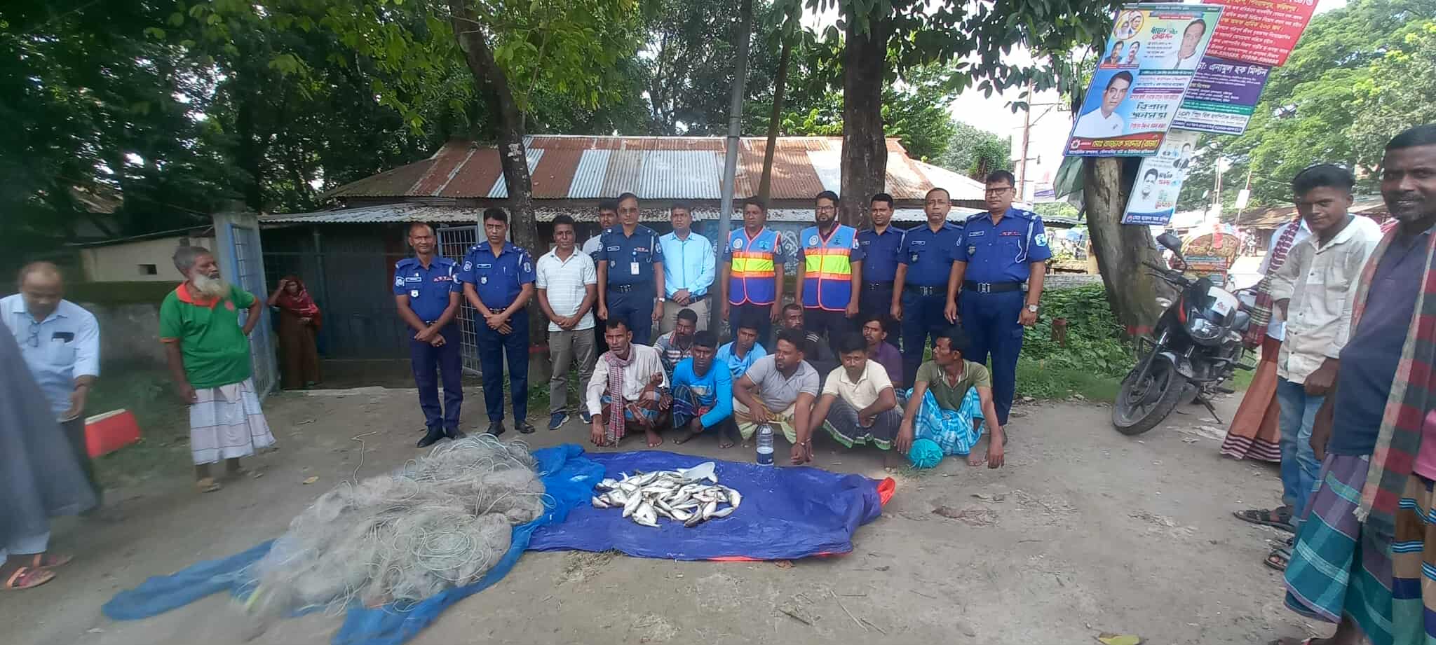 আটককৃত’রা হলো, ফরিদপুর জেলাধীন নর্থ চ্যানেল ইউনিয়নের ৮নং ওয়ার্ড গুলজার মিয়ার ডাঙ্গি গ্রামের ১। মোঃ রুহুল আমিন (৩৩), ২। মোঃ ইসাক মোল্লা (৪০), ৩। মোঃ সালাম মোল্লা (৩৬), ৪। মোঃ চুরমান (৩২), ৫। মোঃ আলমগীর (৩০), ৬। মোঃ ফজল মোল্লা (৩৫), ৭। ওবাইদুর সরদার (৩০), এছাড়াও রাজবাড়ী জেলাধীন দৌলতদিয়া ইউনিয়নের ১ নং ওয়ার্ডের সাত্তার মেম্বার পাড়া গ্রামের ৮। মোতালেব কাজি (৪৫), ৯। বাচ্চু সরদার(৩৫)। এসময় জেলেদের নিকট থেকে উদ্ধার করা হয়, প্রায় ৬০০ মিটার দৈর্ঘ্য ও ৫ মিটার প্রস্ত ১৮০০ টাকা মুল্যের অবৈধ কারেন্ট জাল।