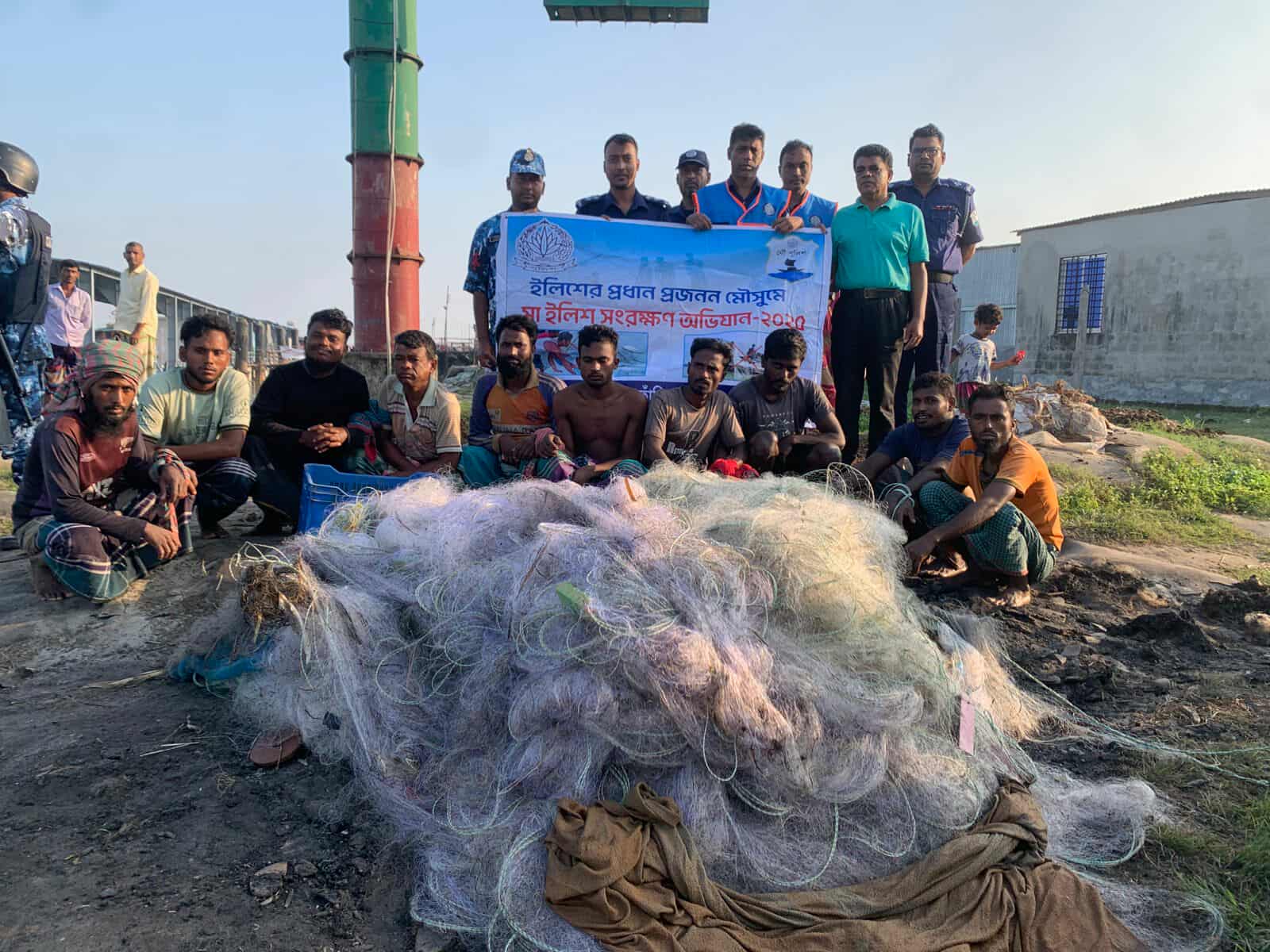 মা ইলিশ রক্ষাতে অভিযান চালিয়ে গোয়ালন্দ পদ্মা নদী থেকে ১০ জেলে কে আটক করেছে নৌ পুলিশ, কোস্টগার্ড, মৎস্য কর্মকর্তা ও নির্বাহী ম্যাজিস্ট্রেট।