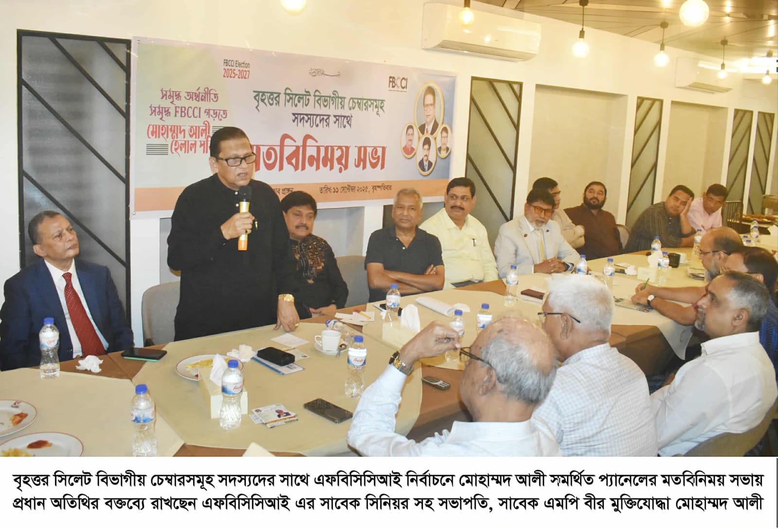 আসন্ন দি ফেডারেশন অব বাংলাদেশ চেম্বার্স অব কমার্স এন্ড ইন্ডাস্ট্রি (এফবিসিসিআই) নির্বাচনে মোহাম্মদ আলী সমর্থিত প্যানেলের সাথে বৃহত্তর সিলেট বিভাগীয় চেম্বারসমূহ সদস্যদের এক মতবিনিময় সভ অনুষ্ঠিত হয়েছে।