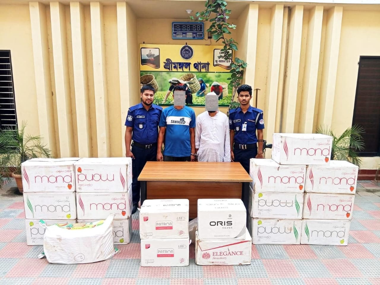 শ্রীমঙ্গলে পুলিশের অভিযানে বিপুল পরিমাণ বিদেশি সিগারেট উদ্ধার, গ্রেফতার ২