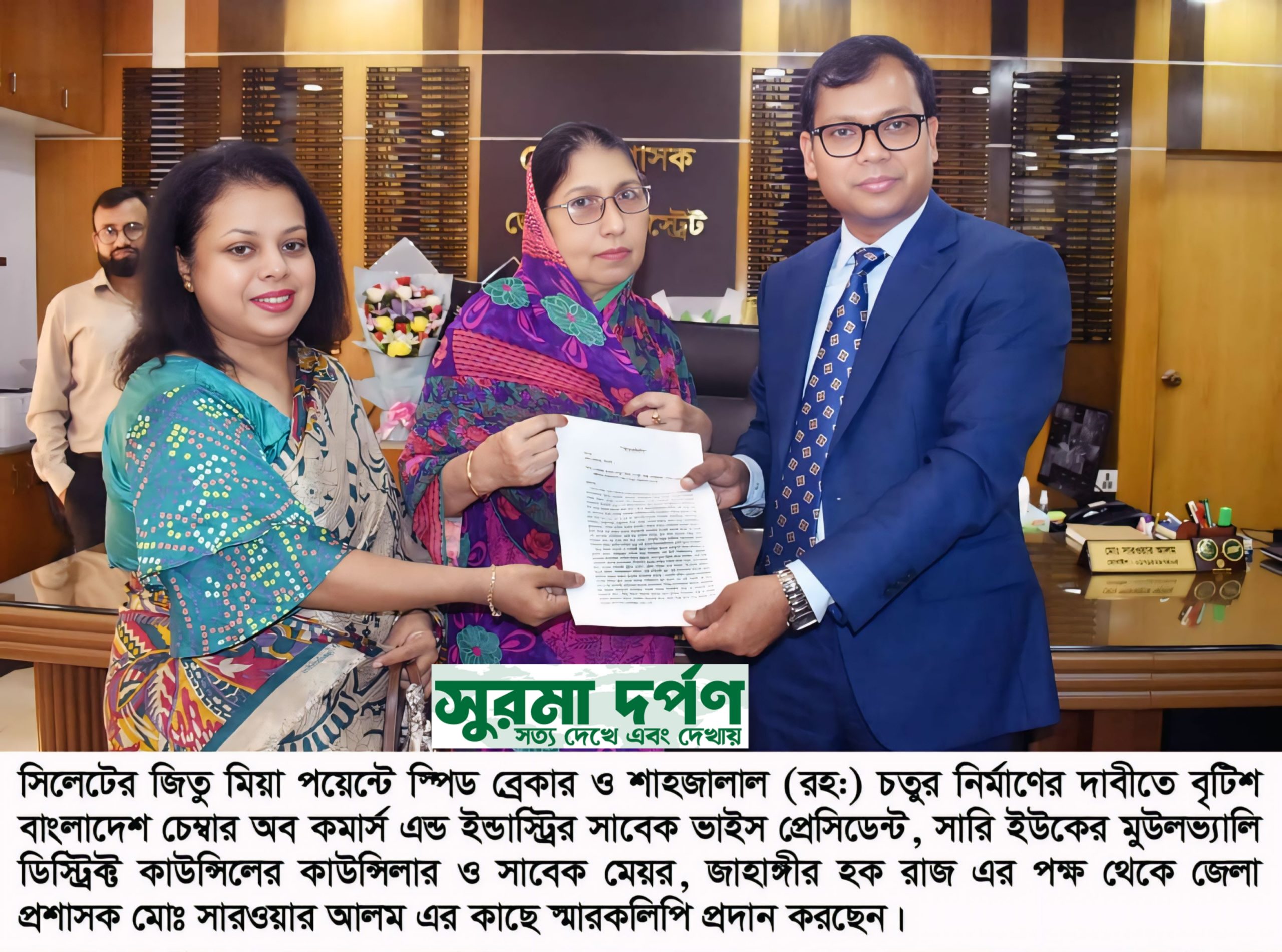 . সিলেটের জিতু মিয়া পয়েন্টে স্পিড ব্রেকার ও শাহজালাল (রহ:) চত্বর নির্মাণের দাবীতে স্মারকলিপি পেশ সিলেটের কাজির বাজার সেতুর উভয় আরও পড়ুন..