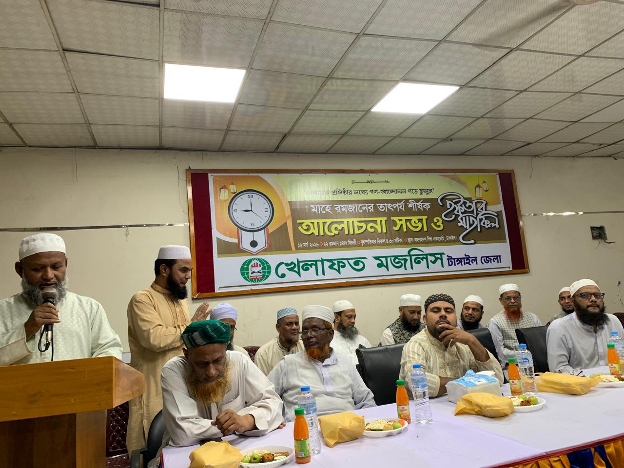খেলাফত মজলিসের টাঙ্গাইল জেলা শাখার উদ্যোগে এক ইফতার মাহফিল অনুষ্ঠিত হয়েছে। ১২’মার্চ ২৬খ্রি. টাঙ্গাইল জেলা শহরের শিশু একাডেমিে এ ইফতার
